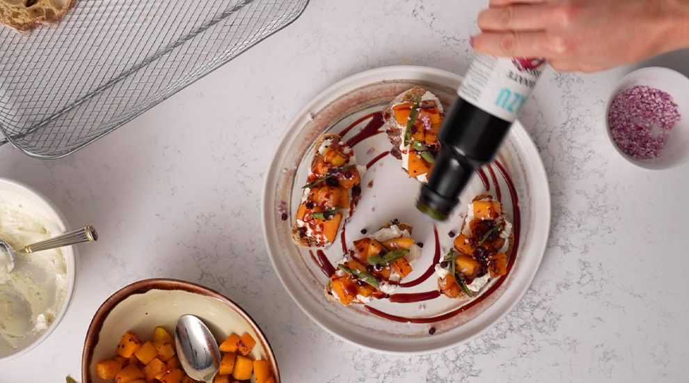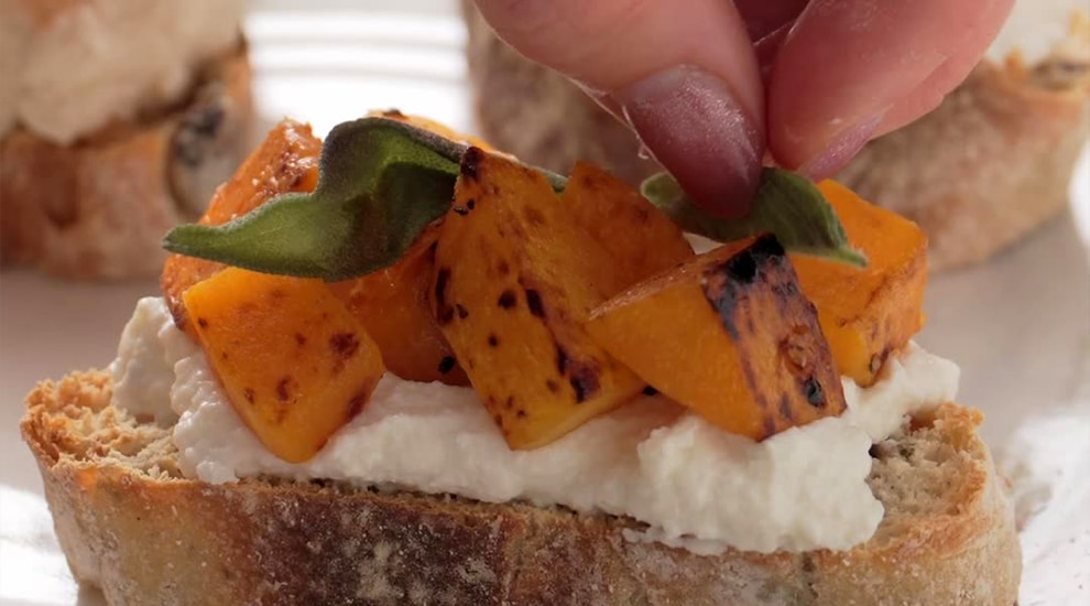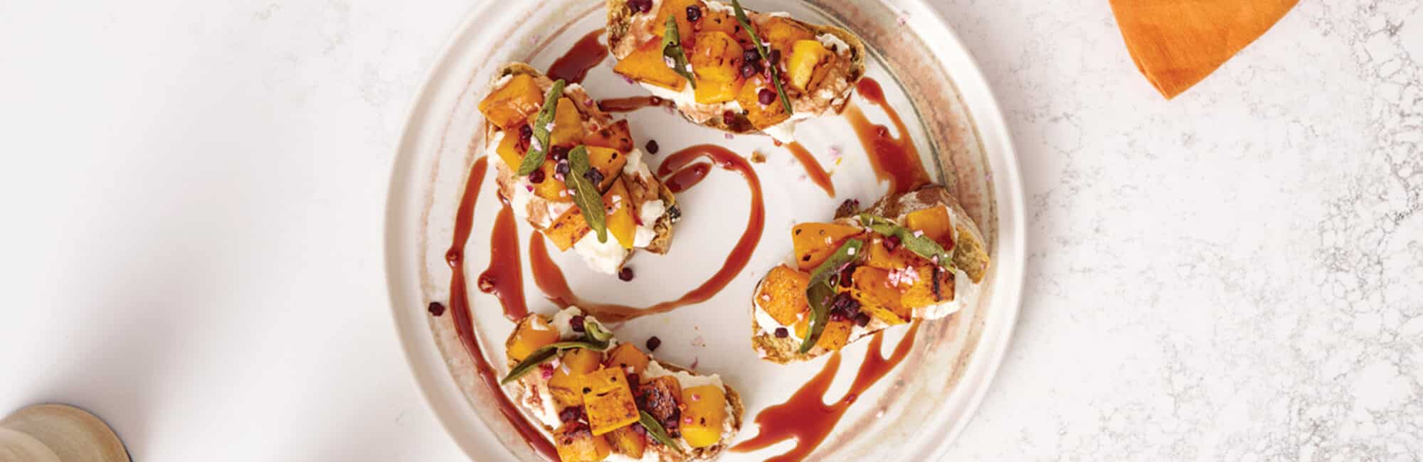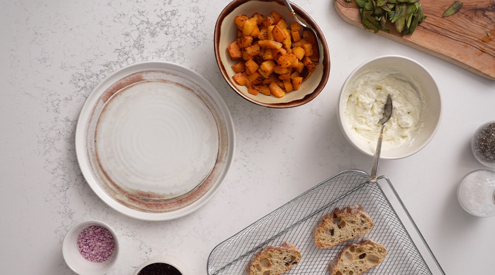 Gather the toast, ricotta, sage and butternut squash, ready to assemble.