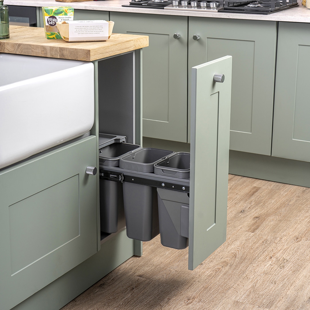 All base mounted bins have the option to convert the pull-out bin to a décor door mounted installation using the BBRACKET