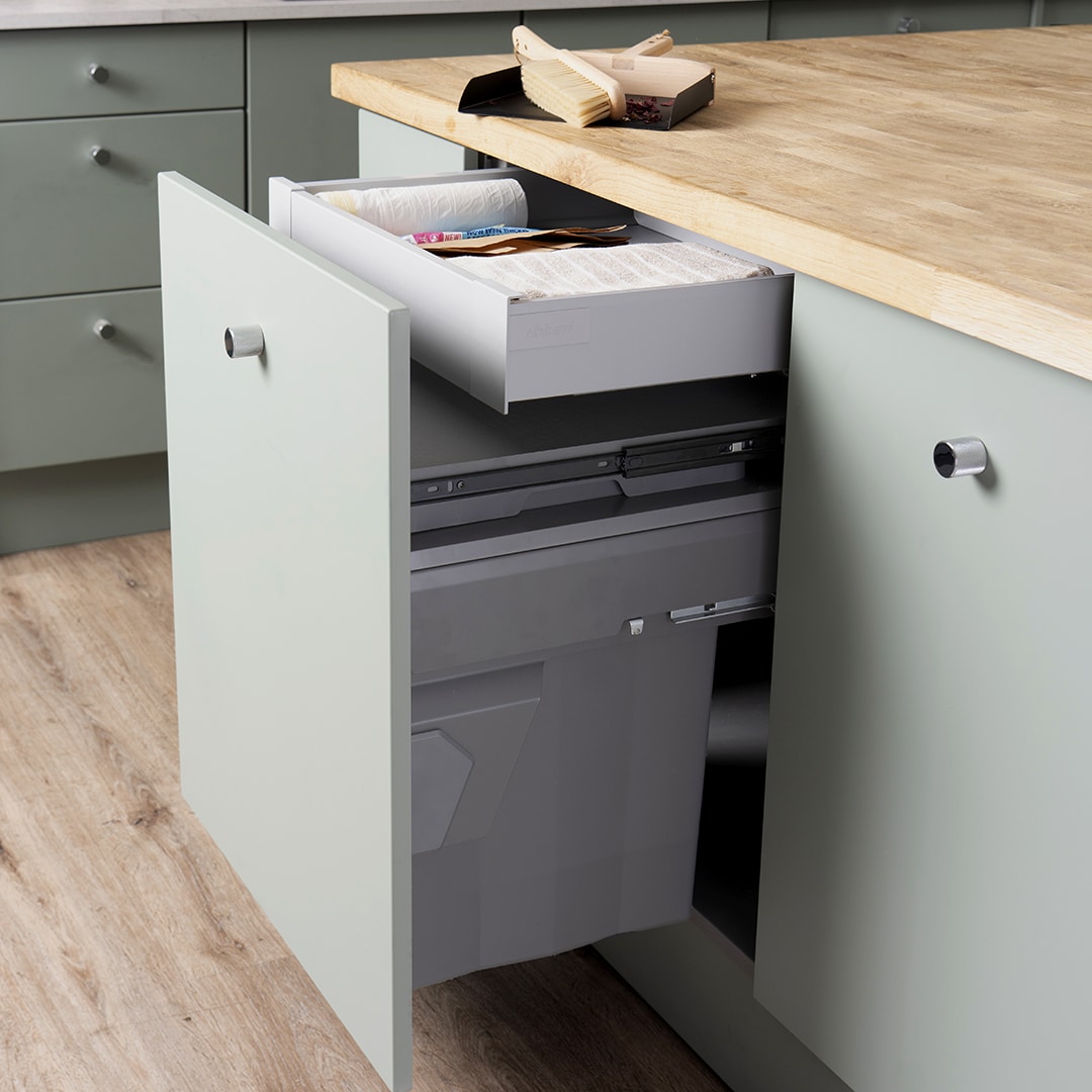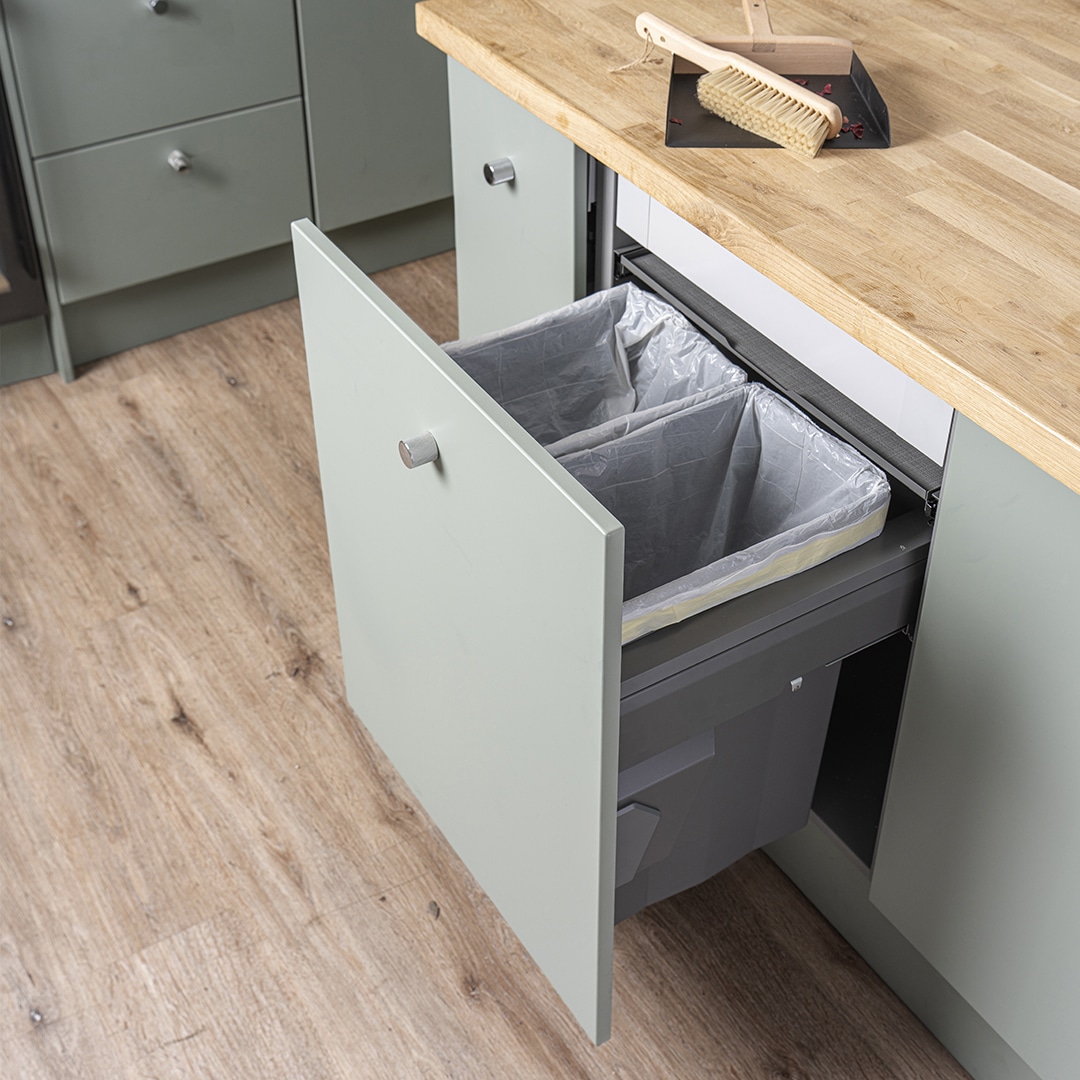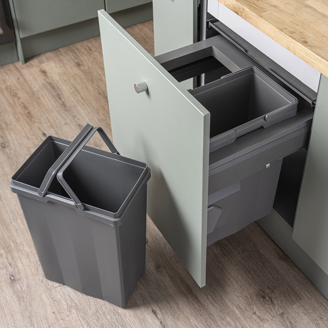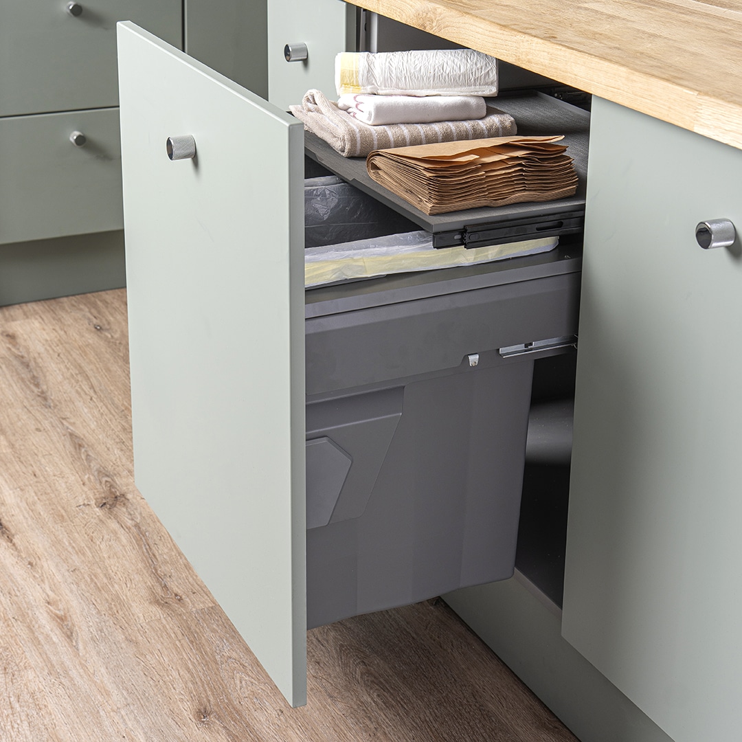 • Décor door pull out mounted bin
