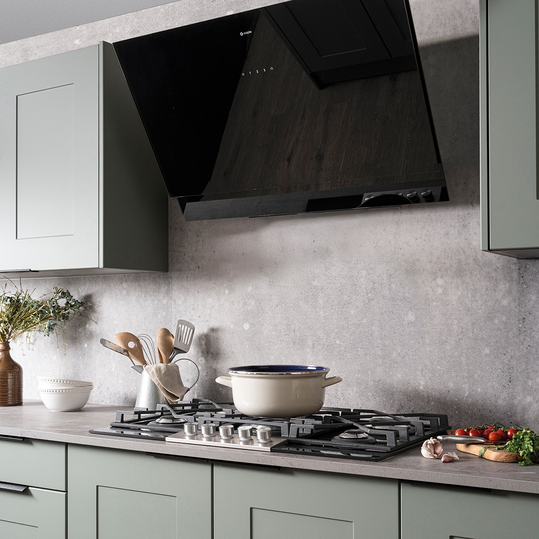 90cm Atara Wall Cooker Hood Black Glass