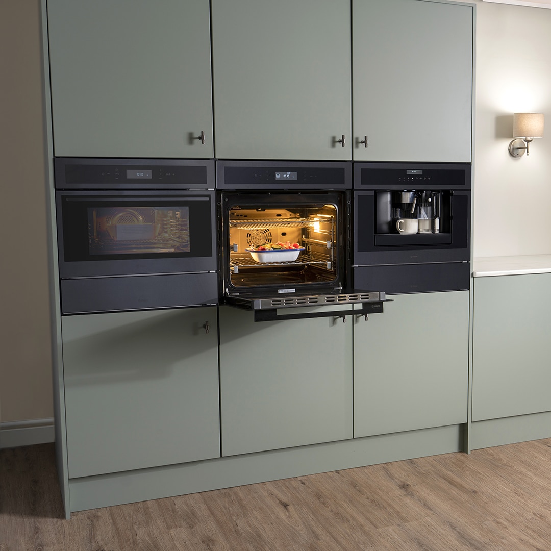 As standard all SENSE and SENSE PREMIUM ovens come with two full extension telescopic runners making it easier to check food as it cooks and reducing the risk
