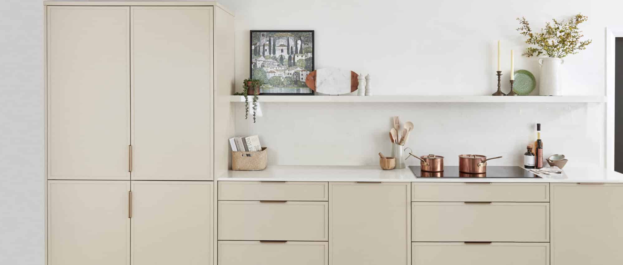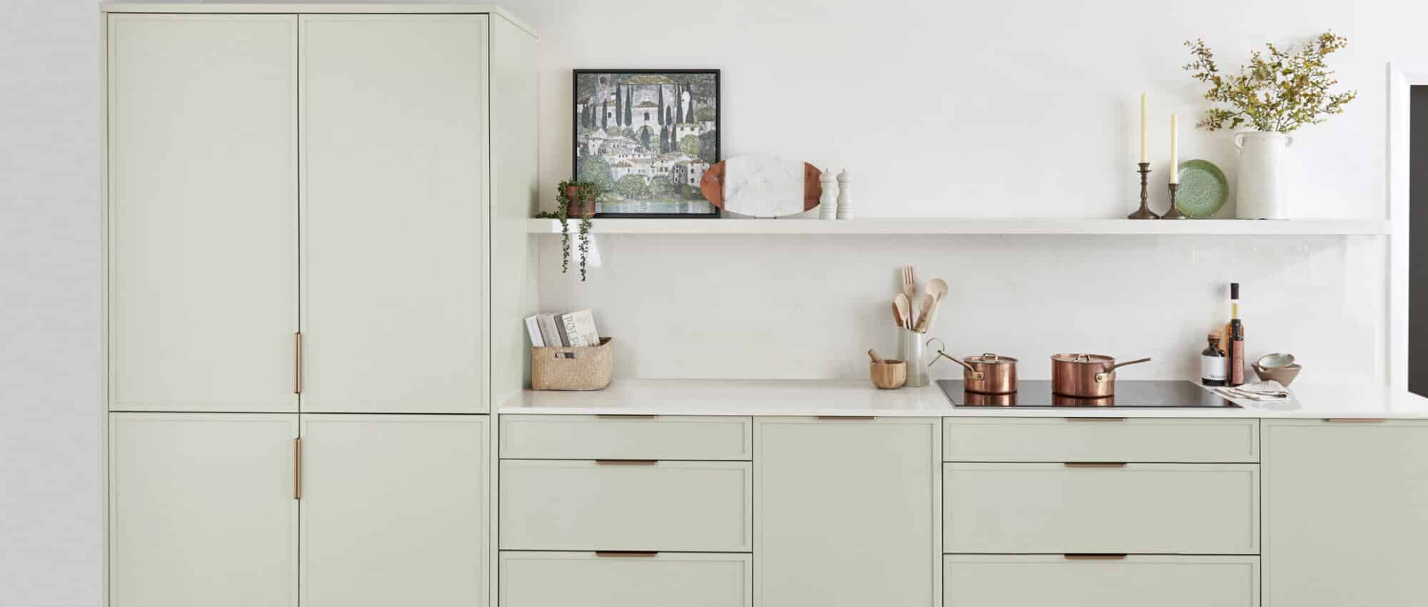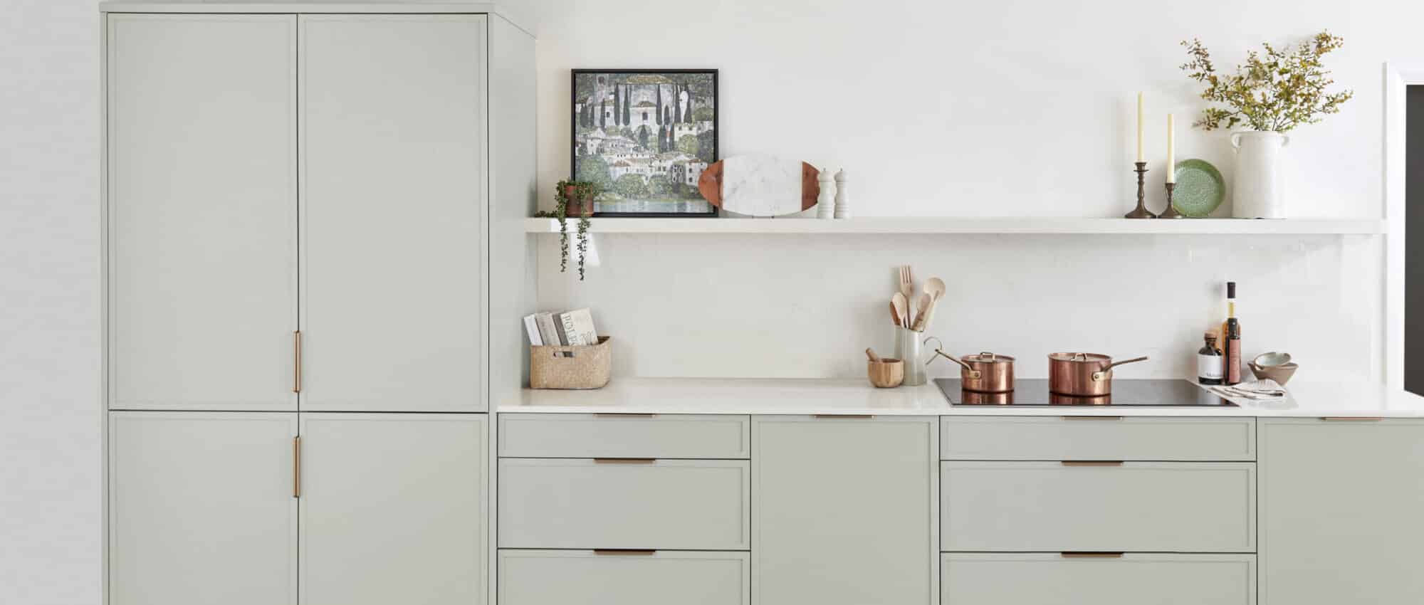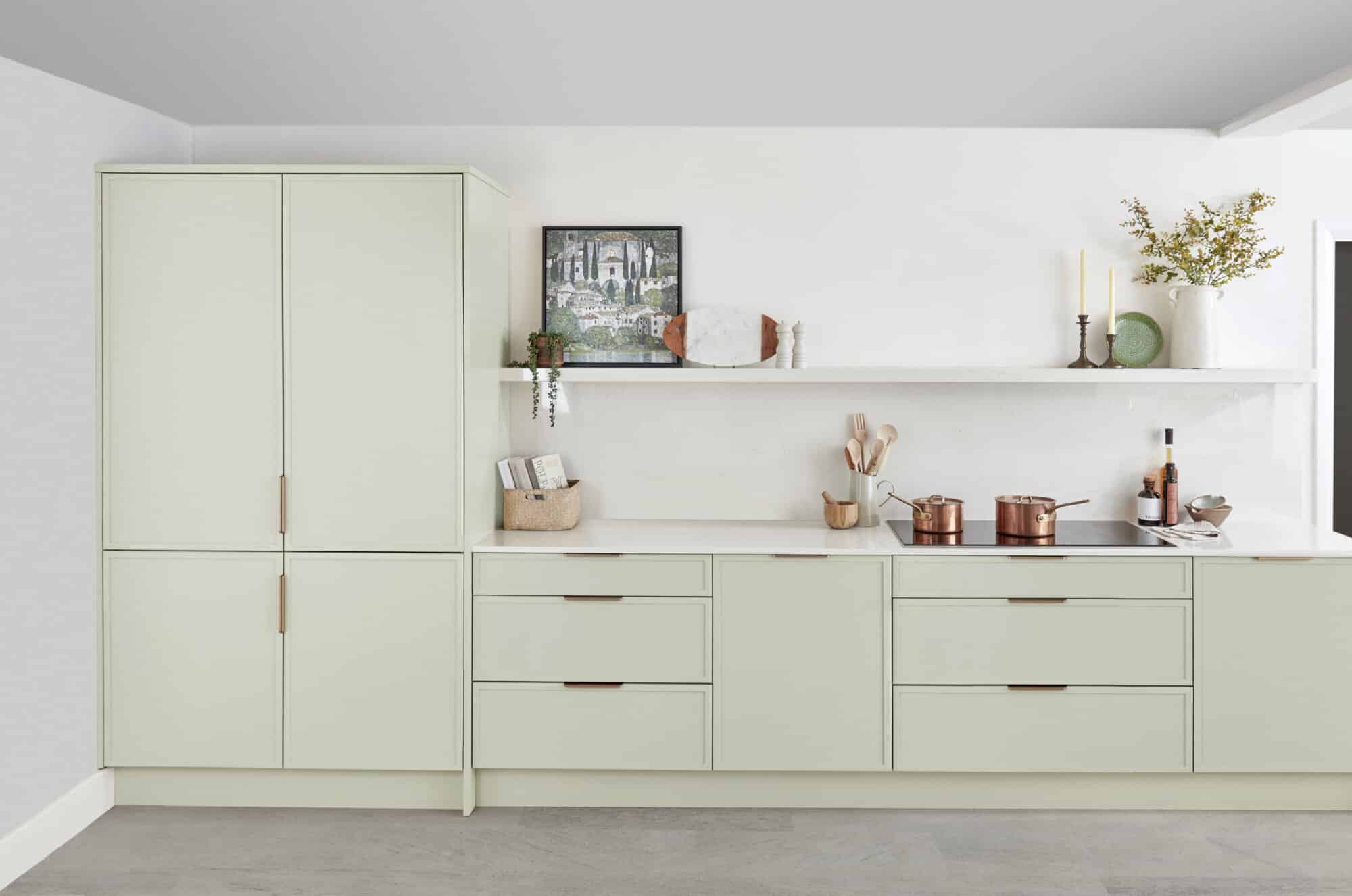 Uber, chic, and stylish, Woodford PTO boasts a super skinny shaker frame that sets it apart. With standout slim-rail doors and a sleek flat cornice/pelmet, this kitchen embodies modern elegance. Crafted with a painted solid ash frame, this kitchen offers bespoke elegance in a palette of 24 colours. Woodford PTO offers a bespoke painted finish, allowing your kitchen to be made to order in the colour you choose.